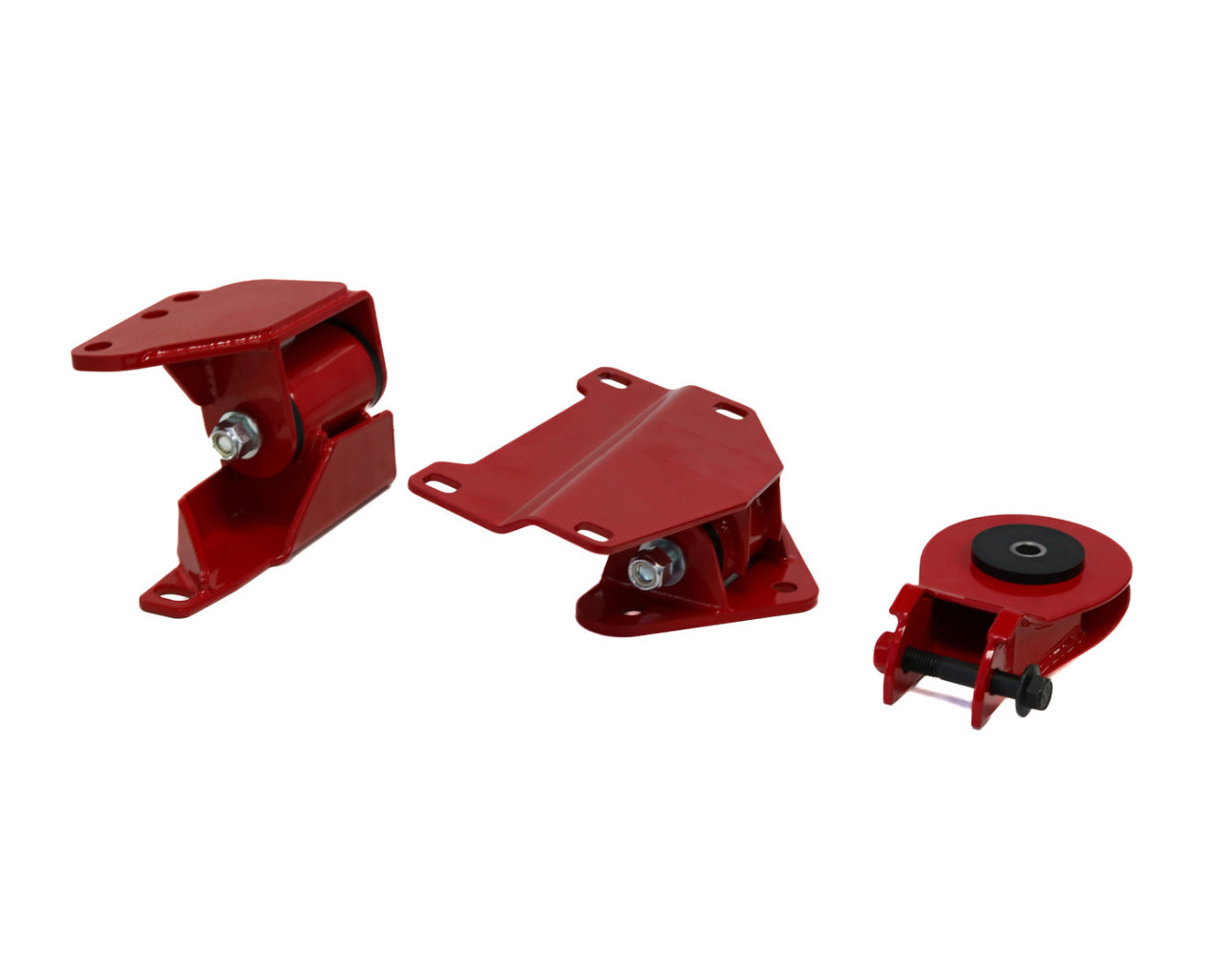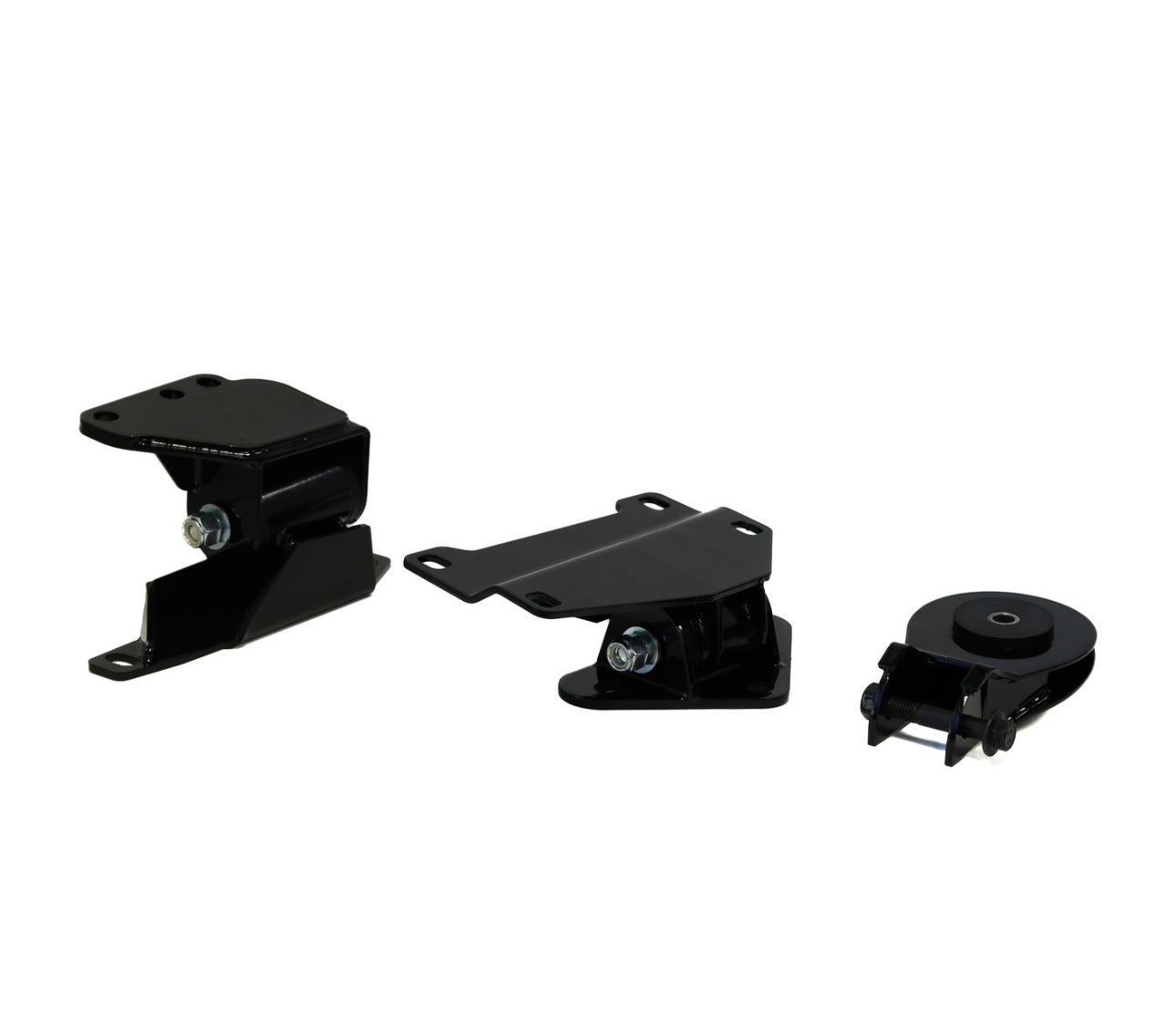 These mounts are designed to completely support the engine and transmission with durometer options to suit all styles of driving. All of our bushings can be replaced at any time. Mounts improve drive line response by inhibiting driveline lash, putting all that motion to the task of moving the car along. Say goodbye to wheel hop and hello to smoother shifts with this complete mount kit!