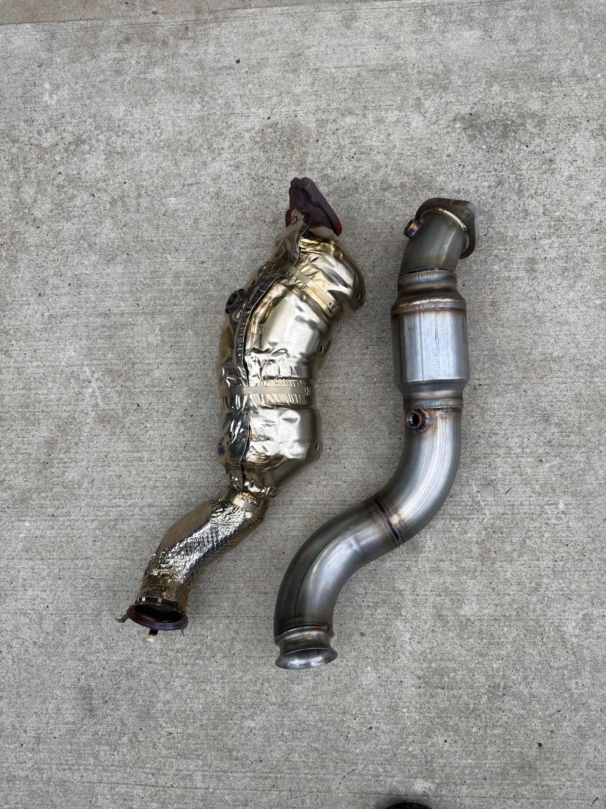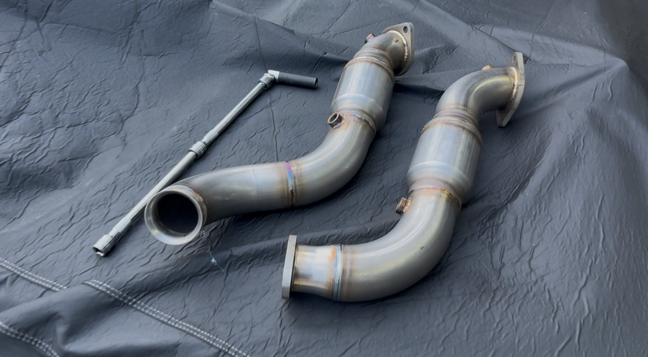 These 3 inch hand-TIG-welded down pipes will help your 3L engine breathe easier with less restriction than the OEM downpipes.